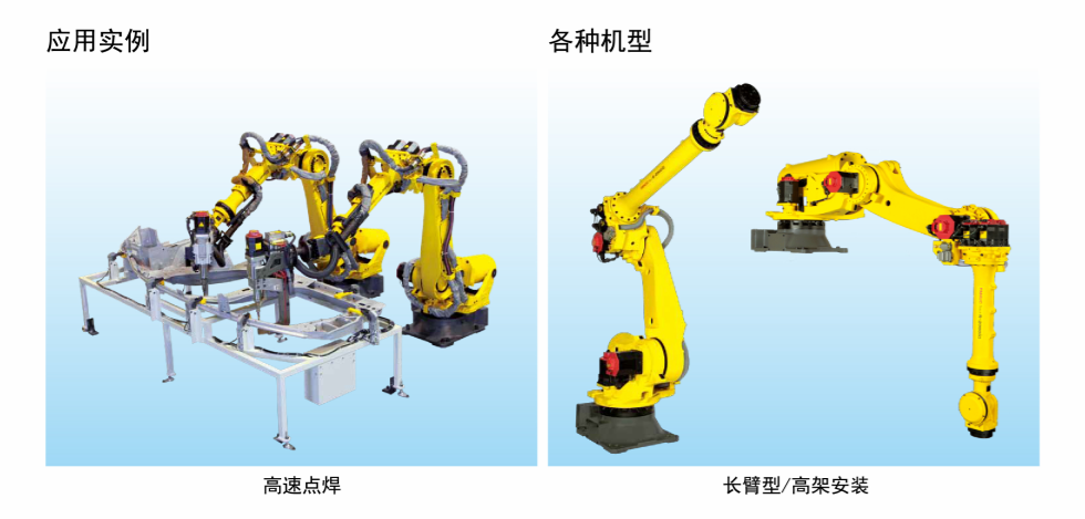 應用領域:裝配 、噴涂及涂裝 、上下料、 材料加工、 碼垛 、物流搬運、 拾取及包裝 、點焊