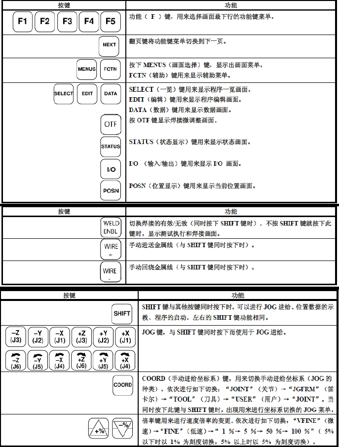 :機器人控制裝置,由電源裝置、用戶接口電路、動作控制電路、存儲電路、I/O電路等構成。用戶在進行控制裝置的操作時,使用示教操作盤和操作箱。動作控制電路通過主cpu印刷電路板,對用來操作包含附加軸在內的機器人的所有軸由伺服放大器進行控制。