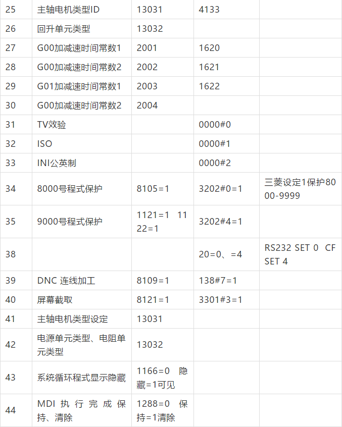 發那科——三菱常用參數對照表