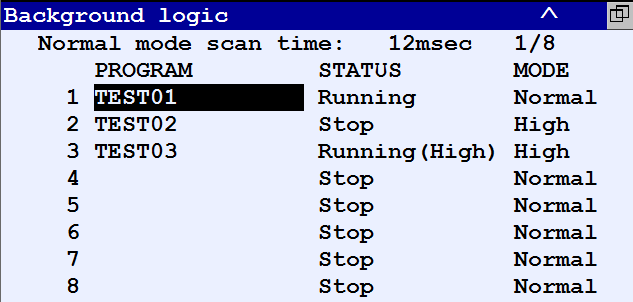 使用后臺邏輯時,需注意*多可以同時執行8個程序作為后臺邏輯。在后臺執行程序時,不能編輯該程序,不能作為通常的任務來執行。尚未在后臺執行程序時,可以將該程序作為通常的任務來執行。在后臺執行程序時,不能通過覆蓋相同名稱的程序來加載。