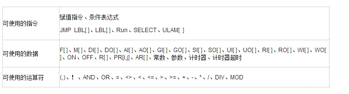 TP程序中可使用的指令、數據及運算符有: